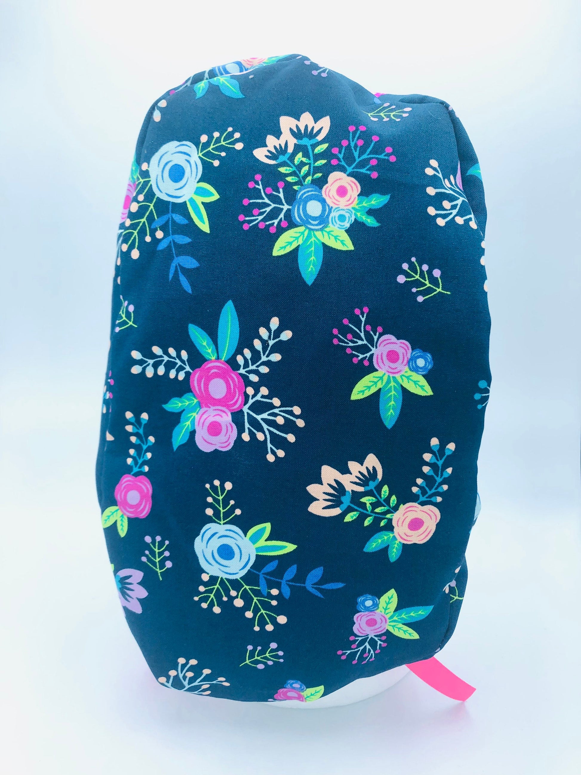 Made with cotton in ponytail style with ribbon tied over the cap or bouffant style with ribbon tied under the cap as pictured.